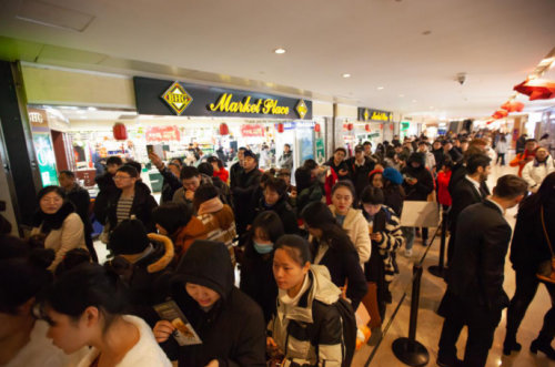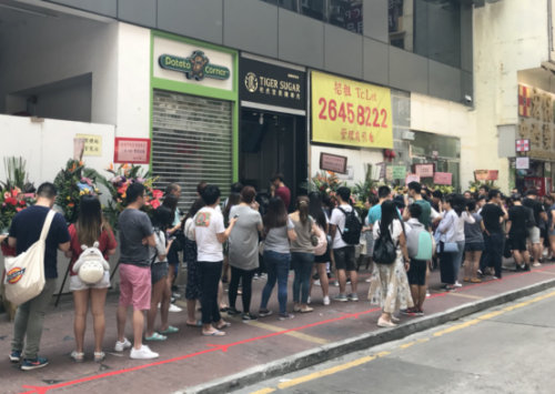 (顾客排起长龙的老虎堂TIGER SUGAR香港铜锣湾店)