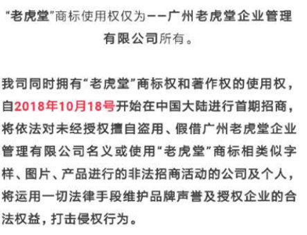 经过多番洽谈,南京桂树集团在实力和理念上均获得了老虎堂TIGER SUGAR台湾总部的高度认可,并最终达成了合作协议。为此台湾官网上也已发布声明,授权桂树集团旗下南京虎虎生风餐饮管理有限公司为大陆地区独家总代理。桂树集团此前就有着龙门花甲这样成功的运营管理经验,全国5000家加盟门店的成绩让老虎堂TIGER SUGAR台湾总部无比认可,这也给老虎堂在大陆的发展奠定了坚实的企业基础。