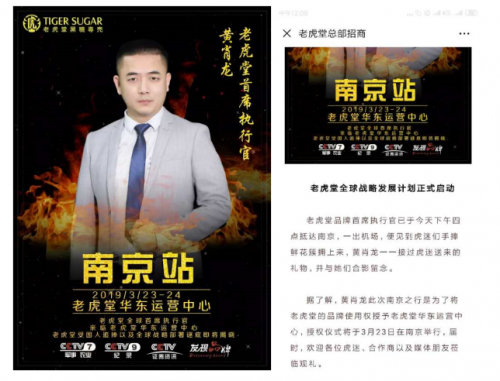 近日,接到热心消费者的举报,南京虎虎生风餐饮管理有限公司联合南京警方,共同查处了一个山寨老虎堂的运营中心。据悉,该公司正是老虎堂TIGER SUGAR的山寨品牌中气焰最高的一个,当事人黄肖龙顶着“老虎堂全球首席执行官”的名号,前来南京,落实所谓的“全球发展计划”,官方文字介绍之夸张溢于言表。