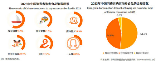 值得一提的是,除了满足消费者饮食需求之外,海参的社交属性也日益凸显。相较于蓝龙虾、鱼子酱等名贵食材,海参的定价较低;而相较于普通的海鲜产品或者药材,海参食品又具备一定的经济价值。因此,约四成的海参食品消费者选择将海参端上桌去招待客人以及与朋友聚餐时食用,还有37.7%的消费者选择用海参送礼。