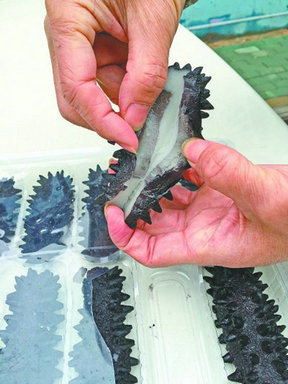 本报讯(见习记者姚传龙)春节前,家住武昌区余家头的彭先生从菜场买了海参,前两天准备烹制时,剖开一看却发现,海参内部没有内脏或残留物,只有灰白色胶状物质,看上去如人造一般。