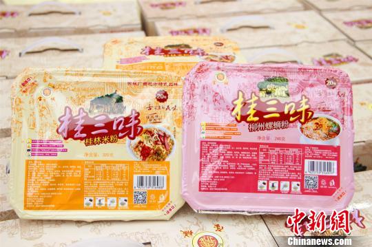 图为预包装的柳州螺蛳粉、桂林米粉。资料图 朱柳融 摄