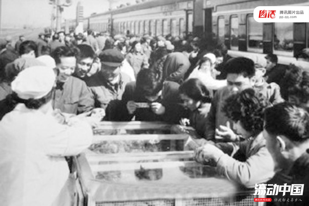 以前火车开的慢,停的长。到了德州不下车买个扒鸡吗?而南下火车一进入广州境内,韶关站的煲仔饭几乎是每个打工仔打工妹的必吃。图为上世纪80年代,一辆列车在经过山东暂停时,旅客下车购买德州扒鸡。