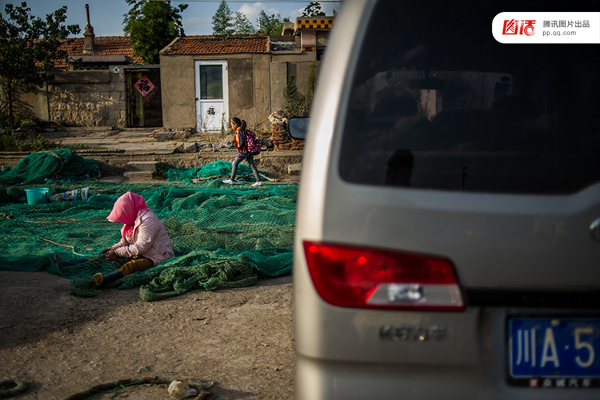 沙子口渔港,一名渔民家属在缝补渔网。从2000年开始,陆续有从四川来到青岛打渔的渔民,那时候鱼多钱好挣,一批一批的四川渔民接踵而至,如今在崂山沙子口南姜码头,来自四川的渔民约占了七成,而当地渔民坚守的则越来越少。