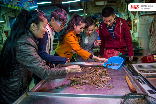 青岛营口路旁的水产市场里,从石家庄来的几个年轻人刚刚拍完婚纱照,打算买点海鲜,在旁边的啤酒屋一起吃顿饭。资源的减少,价格也水涨船高,以2014年青岛当地媒体报道为例,一斤5只海捕(野生)大虾售价高达400多元。