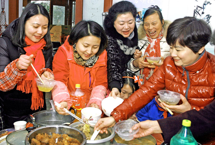 鲜美的鸡汤让居民们连叫鲜、鲜、鲜。