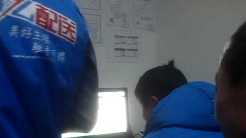 调查采访中,记者还发现了一个更为奇怪的现象。在通州万达广场东南角,饿一个没有任何牌匾标识的商铺,店铺办公室角落里有一台电脑,饿了么通州北苑地区配送团队的管理人员,平时就在这里用这台电脑上办公。
