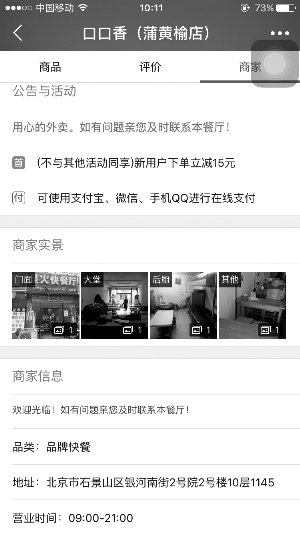 个别餐厅“名不副实”,如一家名为“口口香(刘家窑店)”,页面下方登记地址显示为“朝阳区”,而根据本市行政区划分,刘家窑及周边地区属于丰台区,另一家“食好运煎饼(蒲黄榆店)”登记地址为“顺义区南法信镇”,需知蒲黄榆与南法信两地相去甚远,直线距离近40公里。