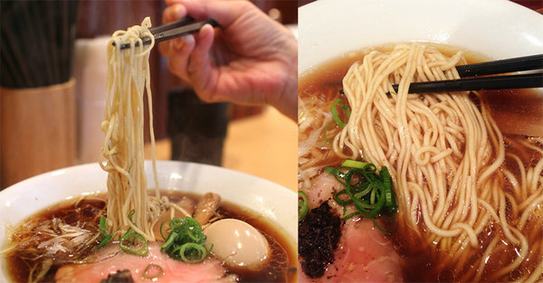 然后是汤头部分。汤头用的酱油是用整颗黄豆酿造,并在和歌山县的香柏木桶中熟成两年,再加上熟成三年香味更诱人的酱油混合而成,加上整只鸡、猪脚、北海道产罗臼昆布、三重县产秋刀鱼干、蛤蜊、香菇、野菜、干物等山珍海味一起熬煮,用严格的温度控制让鲜味彻底被提炼出来,整体味道清淡而层次丰富。最后更加上红酒和意大利产的黑松露油,但酱油的香气完全不会输给松露!