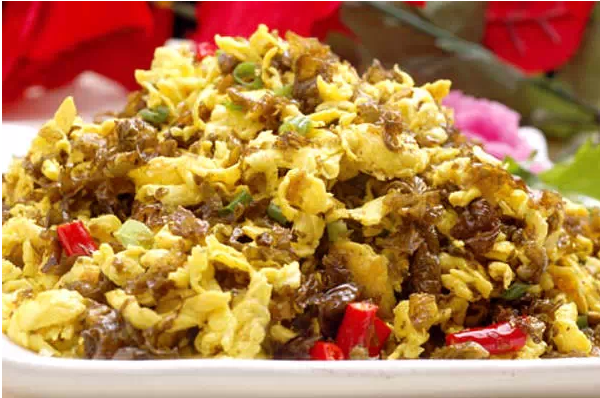 煎饼卷的菜,以头台乡产的小鱼小虾为上品,用螺丝辣子一炒,嚼得有劲,辣得过瘾。