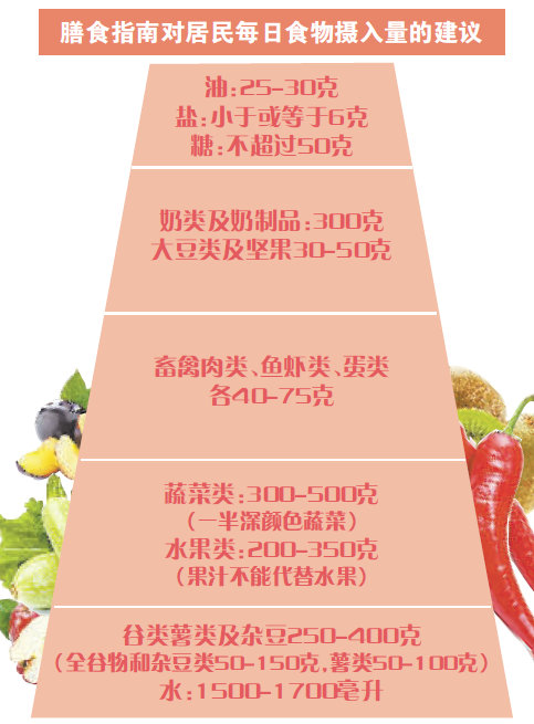 自1997年我国推出“中国居民膳食营养宝塔”,以“宝塔”图形告诉大众最佳的膳食搭配,可以说“宝塔”是我国的膳食特色标识。北京商报记者注意到,今年的“宝塔”结构没有变化,但以往居民熟悉的不少食物摄入限量发生了变化。中国营养学会理事长杨月欣将这个变化概括为“四降一升”。她介绍,“四降”就是降低了水果、动物性食品、大豆和盐的日进量,“一升”就是增加了饮水量。