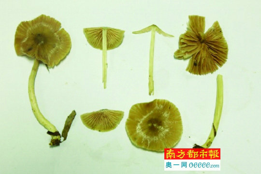 据悉,此次萝岗误食的奥米粉褶蕈外形与著名的食用蘑菇———蚁巢伞(广东地方叫荔枝菌)相似。