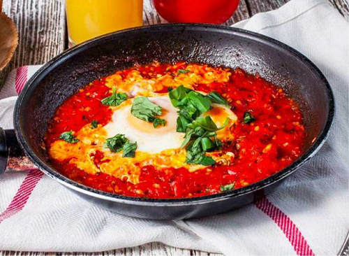 以色列早餐的灵魂是“Shakshouka”——水煮蛋配上特制的番茄蔬菜酱汁。最好再来一份叫做“salat