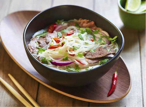 一碗热气腾腾的越南河粉中必定装着各色配料:香菜、豆芽、薄荷、辣椒,花花绿绿的看着就很有胃口!骨头汤底既香浓,又富含骨胶原蛋白,不过最好不要喝太多,以免摄取过量的钠元素。