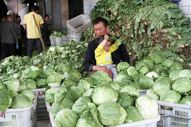 兰州菜市场,大量蔬菜堆积。