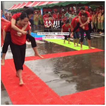 齐头并进——最后这项齐头并进,是最考验团队协作的能力了。在雨中肩并肩、迈开大步勇往直前,向梦想冲击……