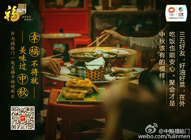 福临门在此次中秋活动中,以“家香味”系列作为与消费者建立情感沟通的纽带,通过中秋节思乡情节的升华,进行“幸福时刻“的走心营销。以三张中秋节预热海报,聚焦思乡、团聚、幸福三大消费者情感诉求,同时,将三种不同的中秋节过节情景进行呈现:一个人的中秋也要精彩、聚会才是中秋节该有的模样、家人团聚时的笑容才是最好的犒赏,并与话题#幸福不将就 美味过中秋# 产生强关联,倡导无论何种方式过节,都要好好吃饭,幸福过中秋!情感化的场景海报,打造温馨的中秋氛围,与广大消费者建立情感联系。