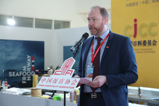 本周,北京世界食品博览会的举办更是吸引了众多进口食品商及餐饮业同仁的目光。挪威海产局中国大陆及香港区总监毕思明(Sigmund Bjørgo)先生在现场做了简要发言,为一场以挪威三文鱼为核心食材的日料厨师比赛揭开帷幕。