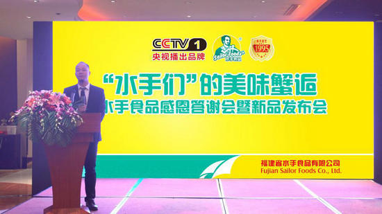 央视代表冯铭宇对水手食品的发展十分看好,她表示:中央电视台提出“国家品牌计划”,旨在推广、培育、扶持相关企业品牌。水手食品历经二十余年的发展,以匠心精神研发产品,以央视平台推广品牌,将为品牌升级插上腾飞的翅膀。