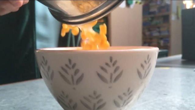 甜玉米罐头打开后就散发出浓重的酸味,倒出时汤汁已经呈粘稠状。该慈善机构的合伙人、筹款经理Helen