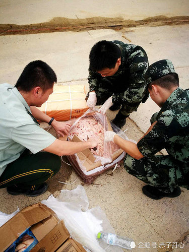 一种是来自禽流感、疯牛病疫区的有病肉,它会导致动物、人类疫情等情况发生;另一种是相关化学指标不合格的毒肉、放置多年的过期肉、非法加入化学药剂进行保鲜防腐的处理肉。”9月4日,广东海警三支队向媒体通报一起案件:近日,该支队在琼州海峡附近海域查获1艘涉嫌走私铁壳船,当场扣押涉嫌走私鸡爪、猪脚、猪耳朵、猪肚、猪舌等冻品300余吨,案值超千万元人民币,查获涉案人员6人。