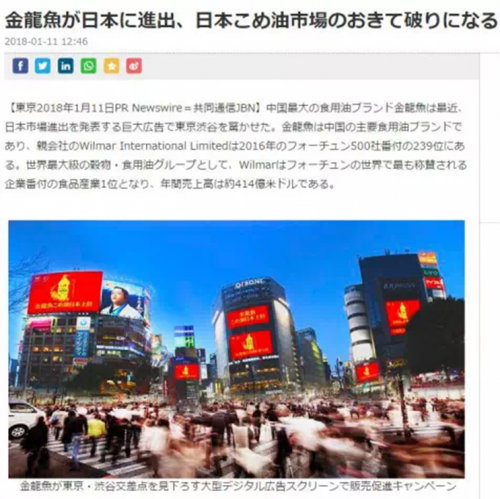 “在日本, 大家开始倾向选择更健康的食用油。金龙鱼稻米油因为营养丰富,香而不腻,受到消费者的喜爱,已经进入了日本多个连锁超市”。