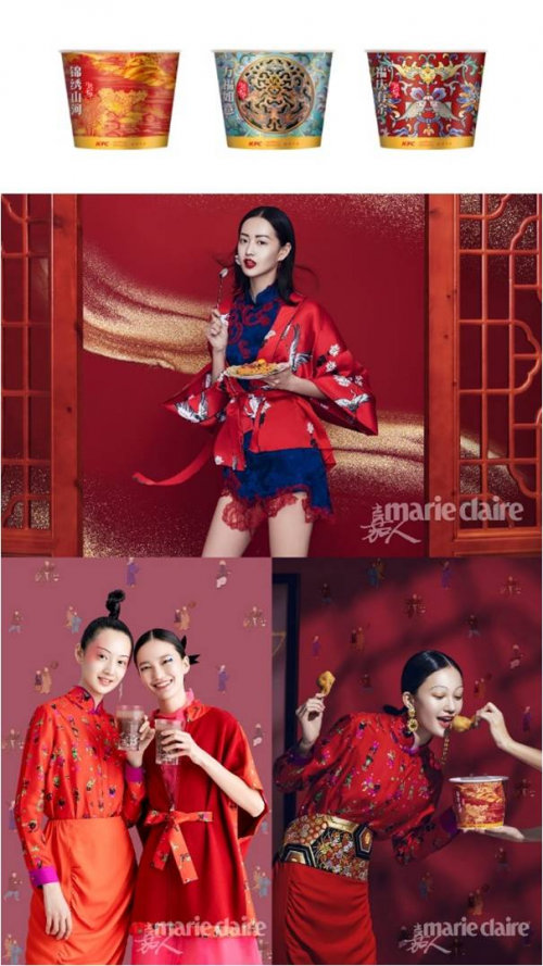 浓密的朱红、华丽的描金、少女的粉蓝彩、栩栩如生的花鸟鱼龙……加之娇俏的国风美女,以及肯德基非遗国技主题桶和酥香脆的新春限定产品,勾勒出了一组时髦女郎的新春嬉戏图。某时尚杂志在农历春节前发布了国风大片系列,张张明艳动人又细节满满,令人眼前一亮的同时,也引发各种热烈讨论。在获悉这是肯德基新春非遗国技主题大片后,不少网友大呼惊艳,并盛赞肯德基“会玩”,把传统文化之美演绎出了国际时尚与青春活力。