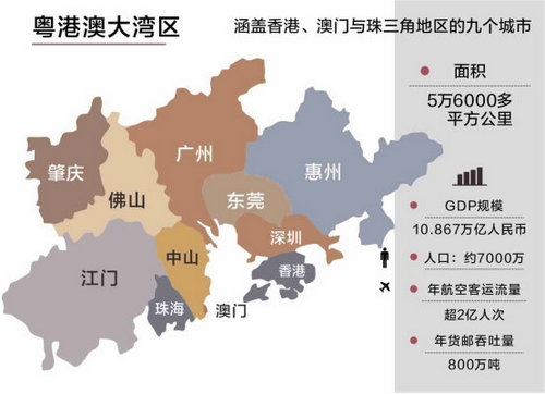 粤港澳大湾区是由香港、澳门两个特别行政区和广东省广州、深圳、珠海、佛山、惠州、东莞、中山、江门、肇庆(珠三角)九个地市组成的我国开放程度最高、经济活力最强的区域之一。2018年末,粤港澳大湾区总人口已达7000万人,GDP10.867万亿人民币,比肩韩国。粤港澳大湾区已经上升为国家发展战略,正在向着与纽约湾区、东京湾区、旧金山湾区比肩的世界第四大湾区迈进。