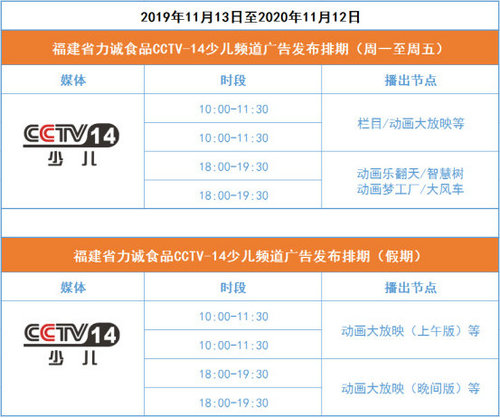 “鳕鱼富含DHA,力诚IQ鳕鱼棒,来自太平洋的鳕鱼,聪明的宝贝喜欢吃,力诚IQ鳕鱼棒”。2019年11月13日,央视少儿频道传来耳熟能详的力诚食品品牌宣传片,力诚IQ鳕鱼棒再次强势登陆央视少儿频道,继续在央视少儿频道的各黄金时段全年投放品牌广告,持续提升力诚IQ鳕鱼棒的品牌知名度和美誉度。