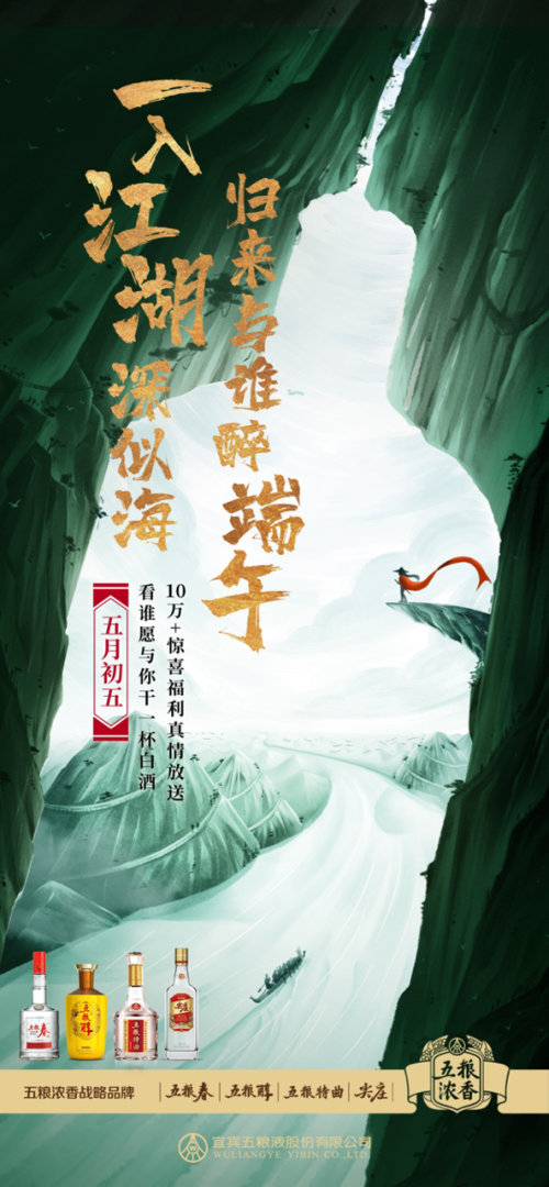 端午节是我国四大传统节日之一,距今已有两千多年的历史,蕴涵独特民族精神和丰富文化内涵,对中国民俗生活有重大影响。五粮酿造作为中国白酒酿造集大成者,历经了长久的传承积淀、拥有独步白酒行业的浓香白酒酿造体系,是五粮浓香旗下品牌制胜市场的基石和支柱。五粮浓香的生产基地四川宜宾,一座弥漫着千年酒香的国家历史文化名城,是中华源远流长的酒文化中最璀璨夺目的一支,拥有4000年的酿酒底蕴。五粮酿造发展至今,拥有“工艺水准硬”、“市场认可度高”、“消费者体验好”三大价值特性,在沉淀中孕育了不可复制的浓香秘诀、传奇的品牌口碑和极致的饮用体验。