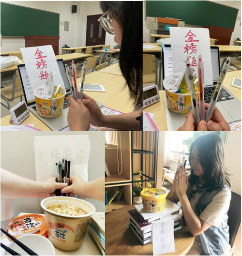 前几天,几人打游戏的时候,当初的舍长突然间冒出了一句:“季秋雨,你高考结束了有没有拜拜金汤肥牛还愿”。还没等季秋雨回答,舍长往闺蜜群里丢了几张照片,照片里是一个吃干净的金汤肥牛泡面桶,舍长拿着几根笔一脸虔诚,背景是一张A4纸,纸上则是舍长一板一眼的几个字“金榜题名”。