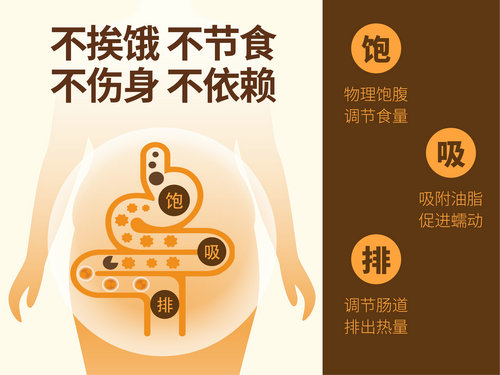 首次在食品中运用超分子编织技术,使原料饱腹系数迅速提升。通过体外模拟技术上百次的实验尝试,横跨化学、食品工程及营养学三大学科理论知识,最终实现在胃酸环境下达到200倍的饱腹系数,饱腹时间长达4-5小时。不仅能聚合吸附糖油,还能提升机体热量的排出,科学减少体内热量摄入。