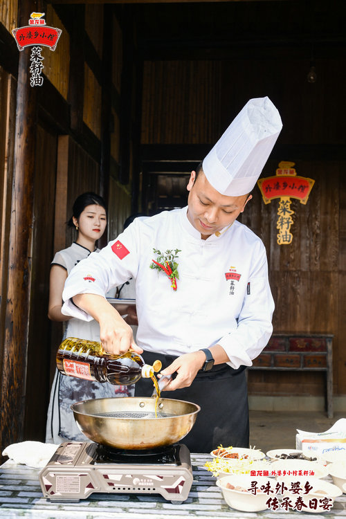 活动现场,金龙鱼外婆乡小榨菜籽油精心策划了一系列丰富多彩的互动环节,请来中国烹饪名师、非物质文化遗产传承人陈波先生现场烹饪油泼辣子、小酥肉、辣子鸡等美食,色香味俱全的佳肴唤醒了大家的味蕾记忆,勾起人们对儿时美味的怀念。