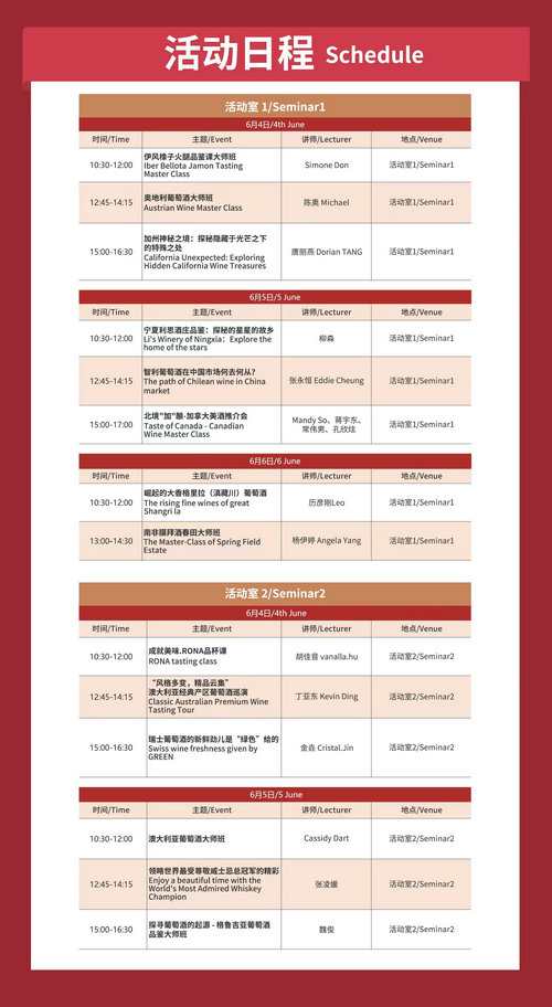 同时,展会同步策划一连3日的大师班活动,携手葡萄酒届大师全方位为观众打造专业、高质的展会体验。