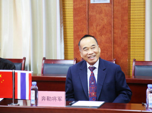 中泰美食文化节暨中泰美食国际大奖赛启动仪式上泰中关系协会主席奔勒将军(GEN BOONLERT)出席会议并在讲话中强调,泰中两国有着深厚的友谊,亲如一家,泰国美食和中国美食都是世界上又好吃又好看的美食,文化深厚,历史悠久。前不久,在北京举办的中泰美食文化节,向中国人民呈现了泰国美食的精粹和泰国民族舞蹈,起到了很好的社会效益,大大促进了两国人民的美食文化,旅游和贸易交往。今天,在北京启动了中泰美食文化节暨中泰美食国际大奖赛将在曼谷举办,我期待着中国美食文化在泰国大展宏图,更希望我能给中华美食名厨颁发金奖。最后,奔勒主席祝大家“六一节快乐!”。
