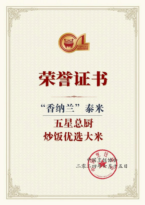 图:香纳兰泰米五星总厨炒饭优选大米荣誉证书颁发