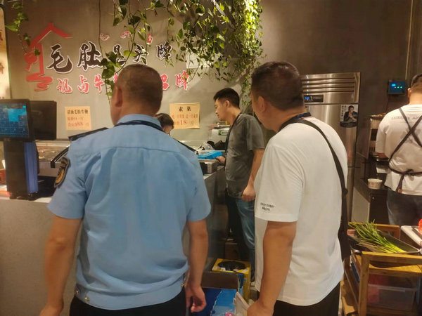 7月24日夜晚,达城明朗的夜空,群星闪耀,街道繁花似锦。位于达川区三里坪街道花溪社区的夜游神大排档,生意火爆,客人轮番上阵享受夜市美食。22:20分迎来了3位特殊客人,他们身着市场监管制服,手持公文袋。难道他们也是来消费的吗?NO,并非如此……