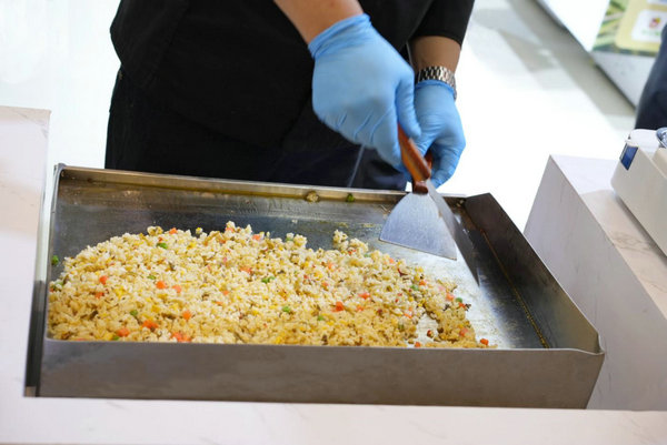 在华食展现场米达屋精心准备了铁板炒饭和蒸锅蒸烧麦的品尝活动,为参展观众带来前所未有的美味体验。香气四溢的铁板炒饭在现场师傅熟练地翻炒下滋滋作响,每一种口味都让人陶醉其中。师傅们精湛的技艺,让米饭粒粒分明,配菜与米饭完美融合,色彩鲜艳,口感丰富。