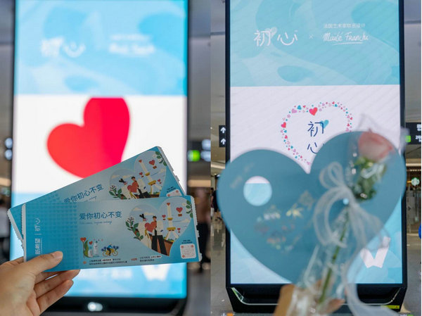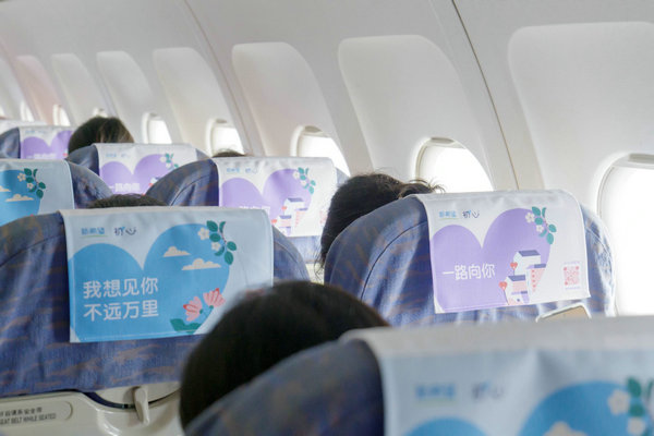 8月10日,“鹊桥航班”在成都天府机场顺利起飞。初心酸奶陪伴旅客开启了一场爱的旅程。拿上初心登机牌,登入机舱内部,初心酸奶为大家准备的小惊喜随处可见,具有品牌代表性的爱心元素妆点了整个机舱。行李架、小桌板、座椅上都写满了异地恋的初心与勇敢,让这趟旅程的仪式感拉满。通过“身”入其中、奔赴“初心”的沉浸式体验,初心酸奶为旅客们带来了一场浪漫热烈的飞行体验。在长沙,初心酸奶也打造了爱意满满的接机点,让见面的快乐从等待开始积蓄,也为这场久别重逢添上了更多的仪式感。