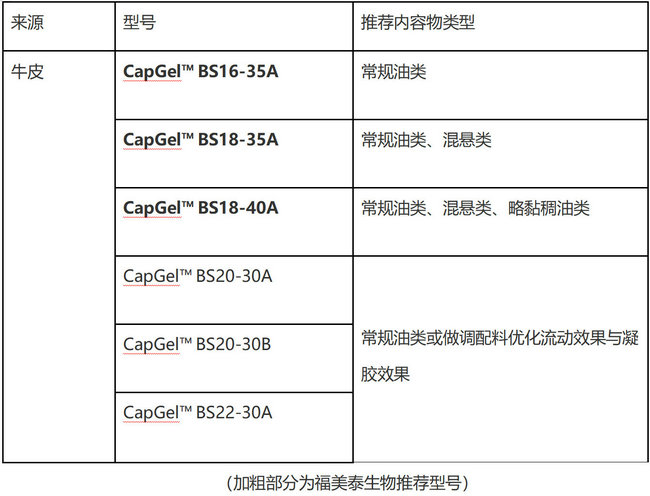 在主流牛皮明胶型号之外,福美泰亦可根据客户需求,稳定提供以下软胶囊用明胶方案: