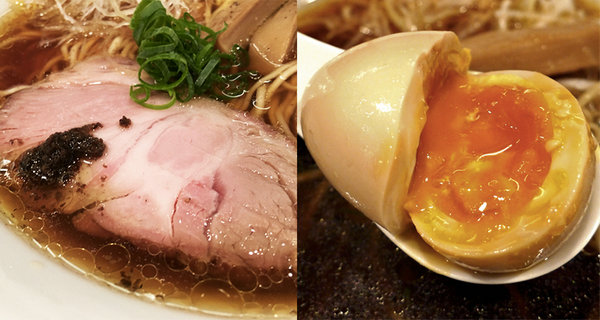 这里的配料更是锦上添花,有温泉蛋和叉烧供选。茑的叉烧是以低温加工过的猪肩胛肉及煎香的三线肉组成,温泉蛋也是刚刚好的半熟蛋,当带着酱油味的汤头浇上叉烧与温泉蛋后,细细品尝还能找到一丝麦烧酒的味道,非常妙。