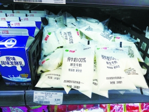 在消费观念转变下,消费者对乳制品的消费也在提升。在各大卖场中,冷柜中的鲜牛奶愈加受到消费者喜爱。消费者购买牛奶图的是新鲜,巴氏奶由于储存时间短,被看做是对鲜奶的最好诠释。但是,目前一些常温奶也“挤”进了巴氏奶阵营。北京商报记者在走访中发现,与巴氏奶“比邻而居”的通常是一些透明包装袋的牛奶产品,这些透明包装的牛奶就是科迪乳业生产的小白奶。
