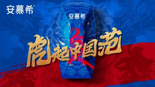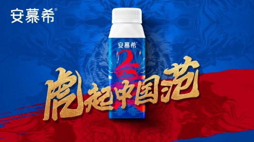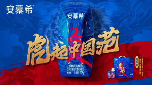 本次安慕希特别推出的虎年限定包装,以“虎起中国范,一起安慕希”为设计主线,融合虎头、虎身等虎年元素,运用全新的设计风格,将品牌精神注入其中的同时,把虎年的祝福和传统文化带入大众的视野,体现了“新年新气象,虎起中国范”的美好愿景。安慕希蓝、华润红、虎啸金三种不同色彩的叠加,带来了强烈的视角冲击,表达了安慕希在酸奶行业的独特定位,传达了安慕希弘扬国潮文化的赤子之心。