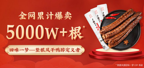 最终通过各个平台的营销布局,回味一梦旗下风干鸭脖实现销售量突破5000W+根,蝉联抖音11个月鸭肉类零食TOPI。而此时的回味一梦成立仅2年,却凭借“风干鸭脖”成为当之无愧的行业黑马。