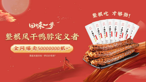 回味一梦不只是将产品做好,而是对产品本身有着极为苛刻的要求。回味一梦凭借网络爆品带动了品牌的飞速增长,却没有因此放松警惕,反而愈加苛刻。首先是选材上,坚持选用瘦肉型的樱桃谷鸭(北京烤鸭食材),保障≥20cm的标准,让用户看得见的高性价比。其次工艺上,采用专业人士独家研制的2x2酱卤风干工艺:16道工序、48小时入味、两次卤制以及两次自然风干,终得香入骨髓、满口生香、食肉者都爱的风干鸭脖。最后在包装上采用了升级的氮气常温锁鲜技术,有效隔绝氧气,保证消费者能随时随地吃到如堂食般新鲜的鸭脖。