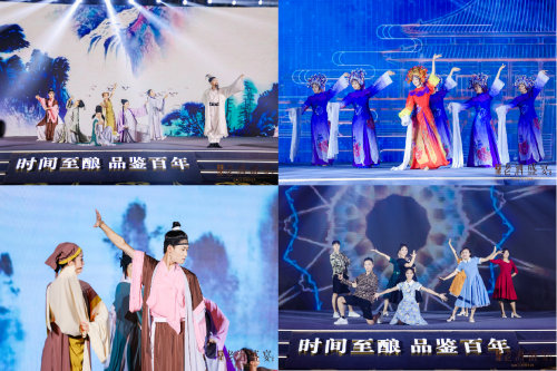 在立体品鉴环节,舍得酒业生产、技术中心副总经理、国家级非遗“沱牌曲酒”传统酿造技艺代表性传承人龙远兵,舍得酒业生产、技术中心总经理助理、技术研究院总监邹永芳,舍得酒业酿酒老师傅文勇兵,以话剧对白形式,在美酒与场景的融合互动中剖析千年酿艺,引导全场嘉宾立体式品鉴了舍得新酒、10年、20年老酒。三杯酒,三重人生境界,嘉宾们在沉浸式体验中感受舍得老酒的时光之味,感知舍得智慧精髓。