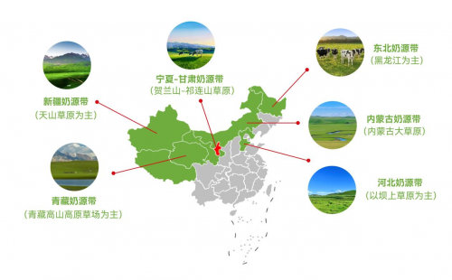中国88%的原奶产自北方奶源带,从地理分布上来看,主要分布在我国北部、西部,而70%的牛奶销售市场集中于人口密集的东南沿海一带。也就是说,北方牛奶普遍面临北奶南运、西奶东运的问题。而宁夏是中国奶业十大主产省/区之一,地处黄金奶源带,拥有独一无二的气候条件、地理优势和资源优势,非常适合优质饲草种植和荷斯坦奶牛健康成长。