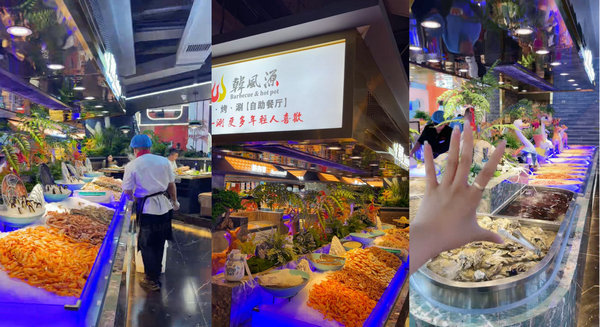 以烧烤自助餐餐饮品牌“韩风源”为例,他们的自播形式采用了门店走播的模式,1主播+1助播的组合,官号每周直播2场。相比设备投入较大的直播间而言,韩风源仅用一部手机就实现了快速开播,这样的直播形式对于自助餐赛道来说也是更高效的盈利机会。
