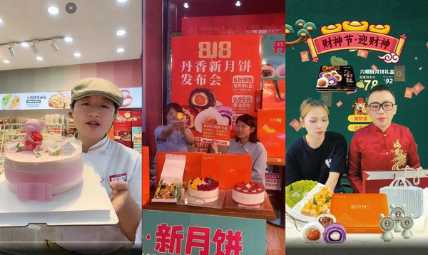 区别于借势常规的节日节点,丹香还开辟了另一种热点营销方式,即自主造节。丹香的直播运营团队会在每月月底规划下月的营销节点,按照传统节日时间或是品牌自身的需要,自主打造节点。在过去的8月份,丹香打造了818“新月饼发布会”,线下商场搭建新月饼发布会现场,同时线上官号进行直播,实现线上线下的有效联动。造节之外,丹香也非常注重通过直播来运营会员体系,在节点大场直播前,会先在粉丝群进行预热,宣传直播福利等,牢牢抓住核心目标人群,因此,从直播间引导的流量,有着较高的核销率。8月,丹香的自播总支付GMV近500万,近半年矩阵号直播的核销率均值在65%以上,直播矩阵号的支付 GMV占比达到70%+。