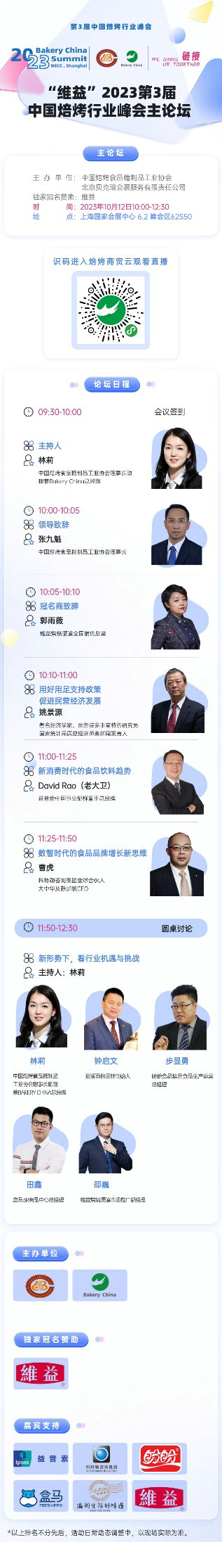 由中国焙烤食品糖制品工业协会、北京贝克瑞会展服务有限公司主办,维益独家冠名赞助的2023第3届中国焙烤行业峰会主论坛,也在如火如荼的展开。